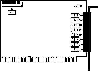 Note: A total of 64 base address settings are available. The switches are a binary representation of the decimal memory addresses. DS1/6 is the Most Significant Bit and switch DS1/1 is the Least Significant Bit. The switches have the following decimal values: DS1/1=8,192, DS1/2=16,384, DS1/3=32,768, DS1/4=65,536, DS1/5=131,072, DS1/6=262,144. Turn off the switches and add the values of the switches that are off to 524,288 to obtain the correct memory address. (Off=1, On=0)