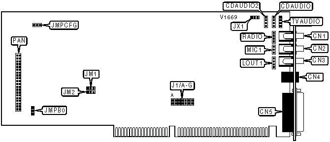 CD-ROM interface, Game/MIDI port, CD audio connectors (2), line in, line out, microphone jack, telephone jack