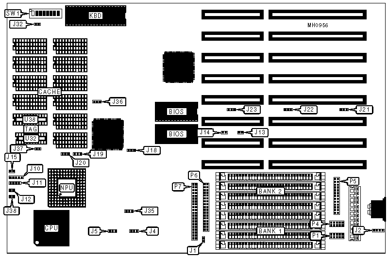 Floppy drive interface, IDE interface, parallel port, serial ports (2)