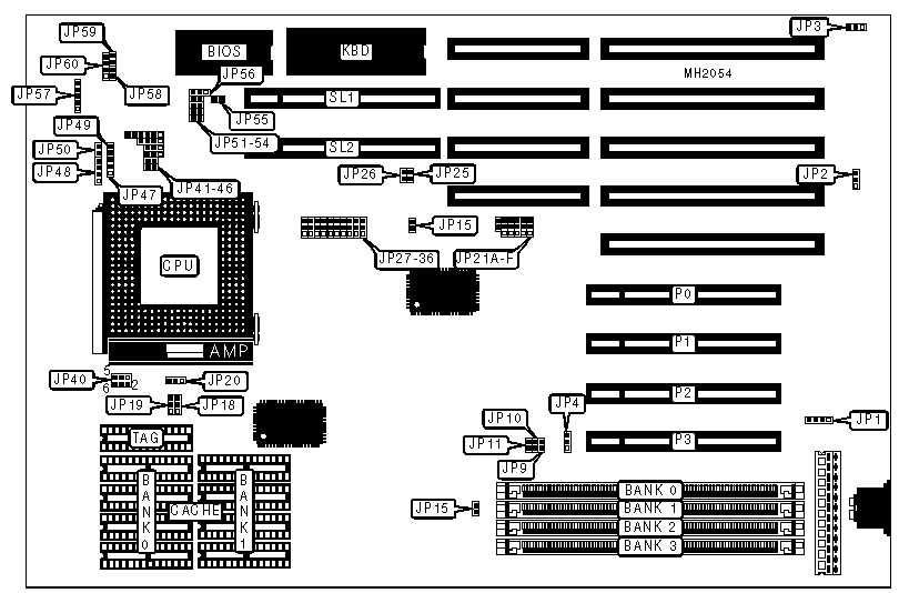 Note: Pins designated should be in the closed position. Slots P0 & P1 are PCI compliant and slot P2 is non PCI compliant. | |||||