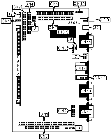 Floppy drive interface, IDE interface, parallel port, PS/2 mouse port, serial ports (2), VGA port, IR connector, audio in - CD-ROM, PC/104 connectors (2)