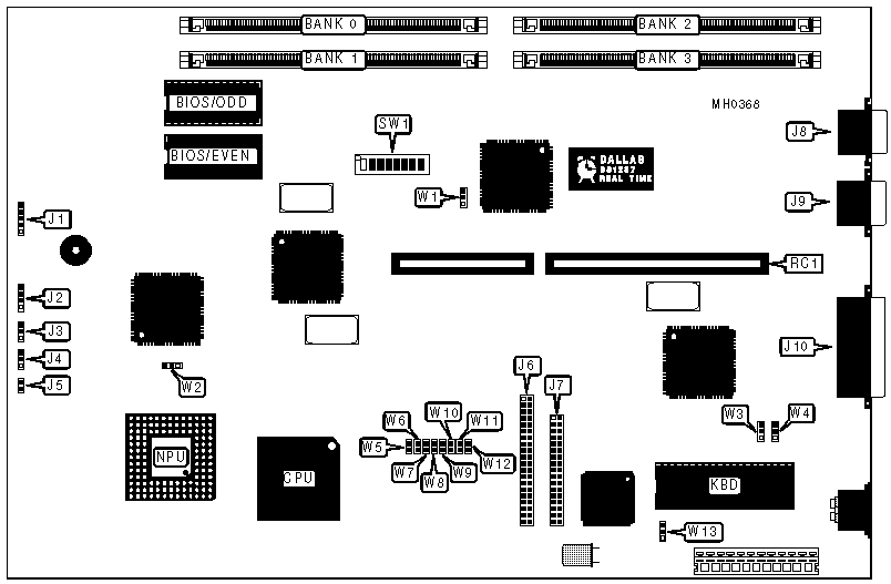 Parallel port, serial ports (2), floppy drive interface, IDE interface |