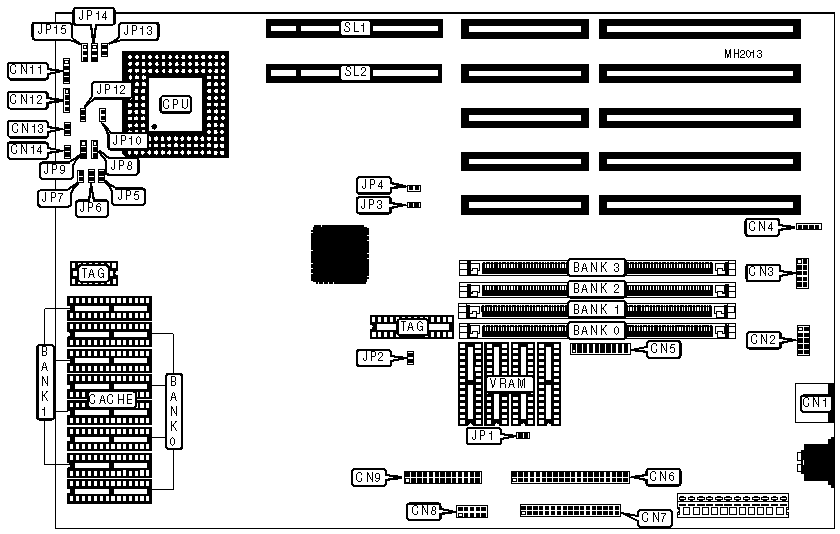 32-bit VESA local bus slots (2), floppy drive interface, IDE interface, parallel port, PS/2 mouse port, serial ports (2), VGA feature connector, VGA port