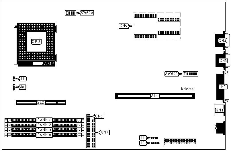 External cache card, floppy drive interface, IDE interface, parallel port, PS/2 mouse port, serial port, VGA port