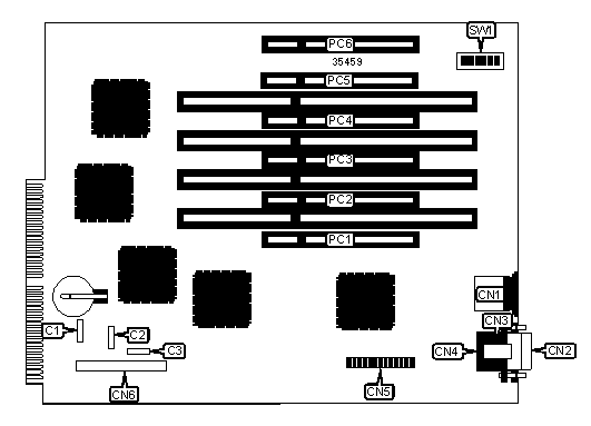 Ethernet 10Base5 connector, Ethernet 10BaseT connector, SCSI interface, VGA port, memory slot |