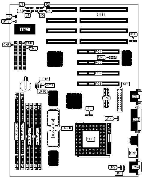 Note: Board accepts EDO memory. Banks 0 & 1, 2 & 3 are interchangeable if only DIMMs or SIMMs are installed.