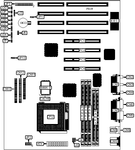 32-bit PCI slots (4), floppy drive interface, game/MIDI port, green PC connector, IDE interfaces (2), parallel port, PS/2 mouse port, serial ports (2), IR connector, USB connectors (2), ATX power connector, line in, line out, microphone in