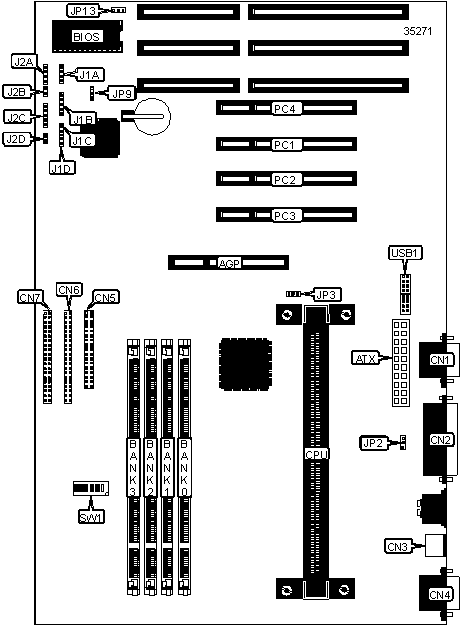32-bit PCI slots (4), floppy drive interface, IDE interface (2), parallel port, PS/2 mouse port, serial ports (2), USB connector (2), IR connector, AGP slot, green PC connector, ATX power connector |