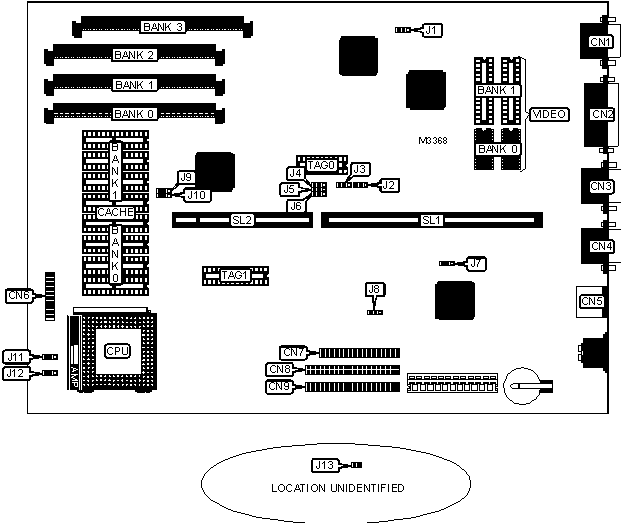 Floppy drive interface, IDE interfaces (2), 32-bit VESA/PCI bus slot, parallel port, PS/2 mouse port, serial ports (2), VGA port, riser slot |