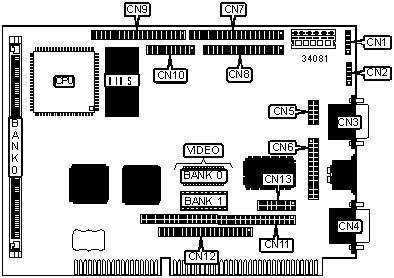 Note: Bank 0 is factory installed and is not configurable. The size of the video memory chips is unidentifed.