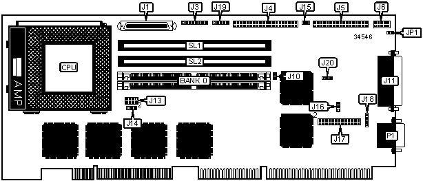 Floppy drive interface, IDE interface, SCSI-2 interface, parallel port, PS/2 mouse interface, serial ports (2), cache slots (2)