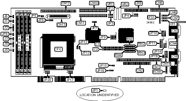 Note: Board accepts 1MB/2MB video memory. The location is unidentified.