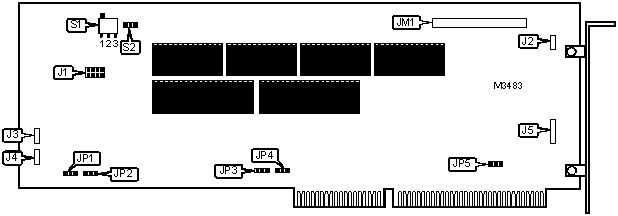 Note: The location of the memory is unidentified. Board accepts 256KB or 512KB memory.
