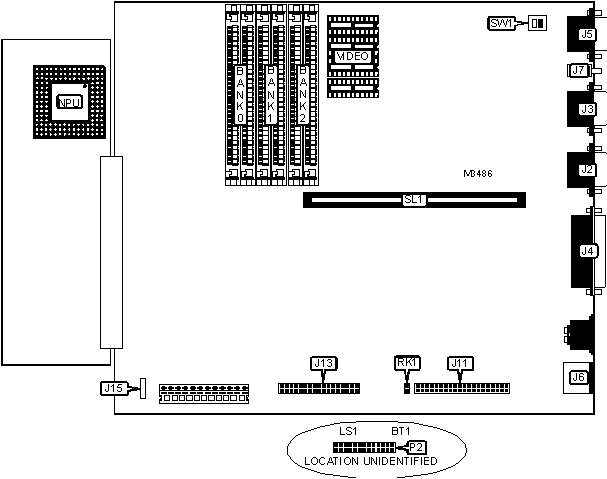 Note: Board is installed with 512KB and is upgradable to 1MB. The size of the chips for 512KB/1MB video memory is unidentified. The location of the banks 0 & 1 are unidentified.