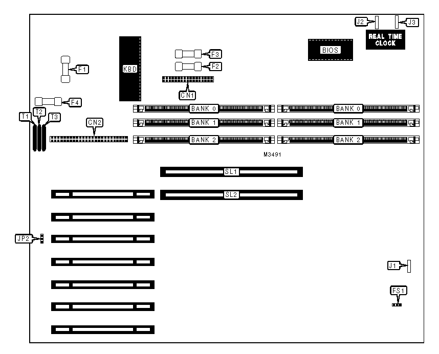 Floppy drive interface, SCSI connector, CPU slot, video slot