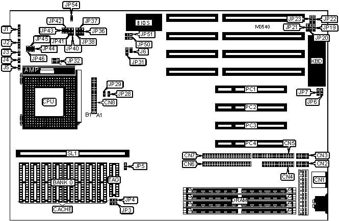 32-bit PCI slots (4), floppy drive interface, green PC connector, IDE interfaces (2), parallel port, PS/2 mouse port, serial ports (2), VRM connector, cache slot |