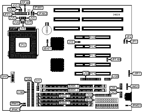 Note: Board accepts EDO memory. Do not install SIMMs & DIMMs at the same time. If both are used, DIMMs must be 5v.