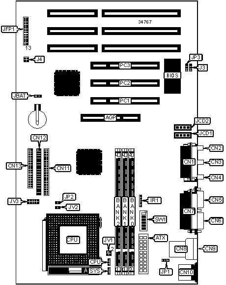 Note: Board accepts EDO & SDRAM memory. 384MB maximum if using SDRAM memory. 768MB maximum if using EDO memory.