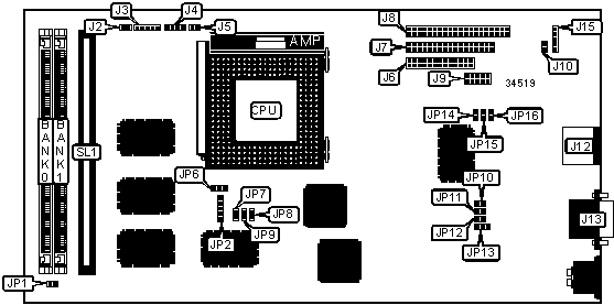 Note: Board accepts EDO memory. Board also accepts x 32 SIMMs.