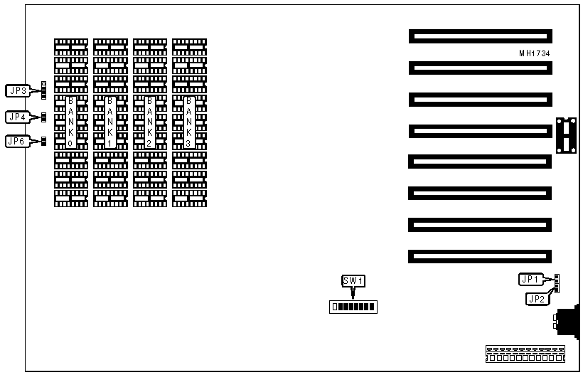The settings and function of SW1/switch 3 and switch 4 are unknown. The functions of JP1, JP2, JP3, JP4, and JP6 on this board are unknown
