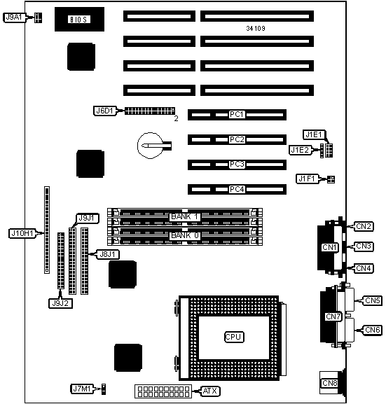 Note: Board accepts EDO memory. Board also accepts x 32 SIMMs.