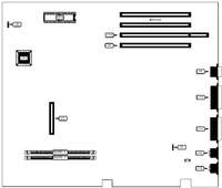 Riser slot, VGA port, parallel port, serial ports (2), IDE interface, floppy drive interface