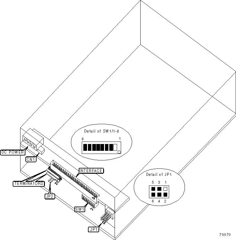 Note: If using Pins 1-6 of JP1 for SCSI ID selection, S1, S2, and S3 of SW1 must be set to the ‘Off’ position. | ||||