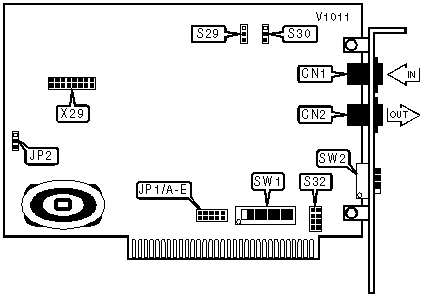 Note: A total of 127 memory base I/O address settings are available. The switches are a binary representation of the hexadecimal addresses. Switch SW1/1 is the Least Significant Bit and switch SW1/7 is the Most Significant Bit. The switches have the following decimal values: switch SW1/1=8, SW1/2=16, SW1/3=32, SW1/4=64, SW1/5=128, SW1/6=256, SW1/7=512.Turn off the switches and add the values of the off switches to obtain the correct base I/O address. (on=0, off=1)