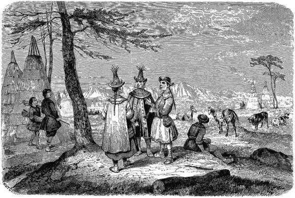 Voyageurs yakoutes.—Dessin de Victor Adam d'après le comte de Rechberg.