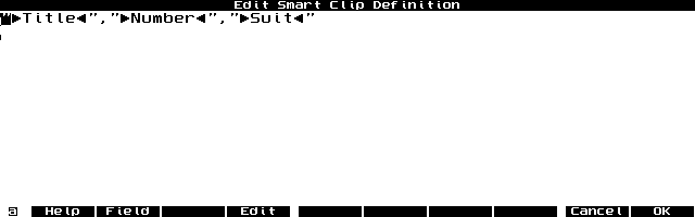 I created two Smart Clips because I wanted slightly different information to be displayed in the suit (minor arcana) cards than what I wanted displayed in archetype (major arcana) cards. Similarly, if you wanted to create a language vocabulary APPTS.INI file, you might want nouns to have different fields show up on the Appointment Book Greeting Card then verbs.