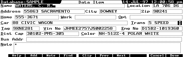The PhoneBook also has other functions. I modified another PhoneBook file to keep track of all the paint codes of every Honda-powered car ever made. That's when I realized that Honda has 33 different shades of RED! I modified another PhoneBook file to keep track of all special order parts from my vendors.