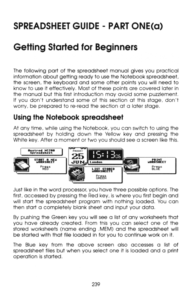SECTION 10 - SPREADSHEET GUIDE - PART ONE (A) - GETTING STARTED FOR BEGINNERS