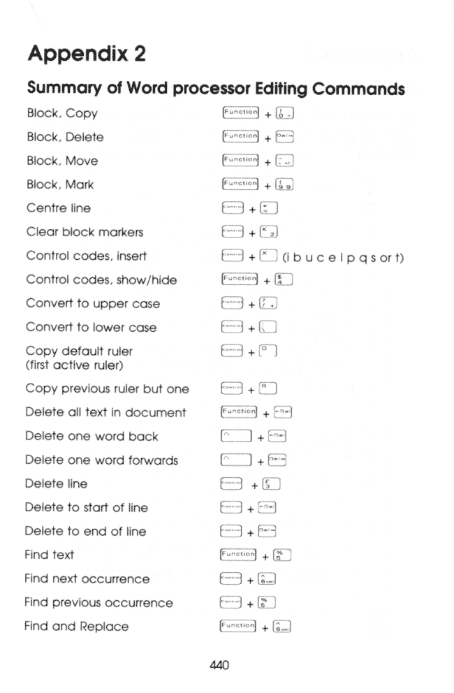 APPENDIX 2 - SUMMARY OF WORD PROCESSOR EDITING COMMANDS