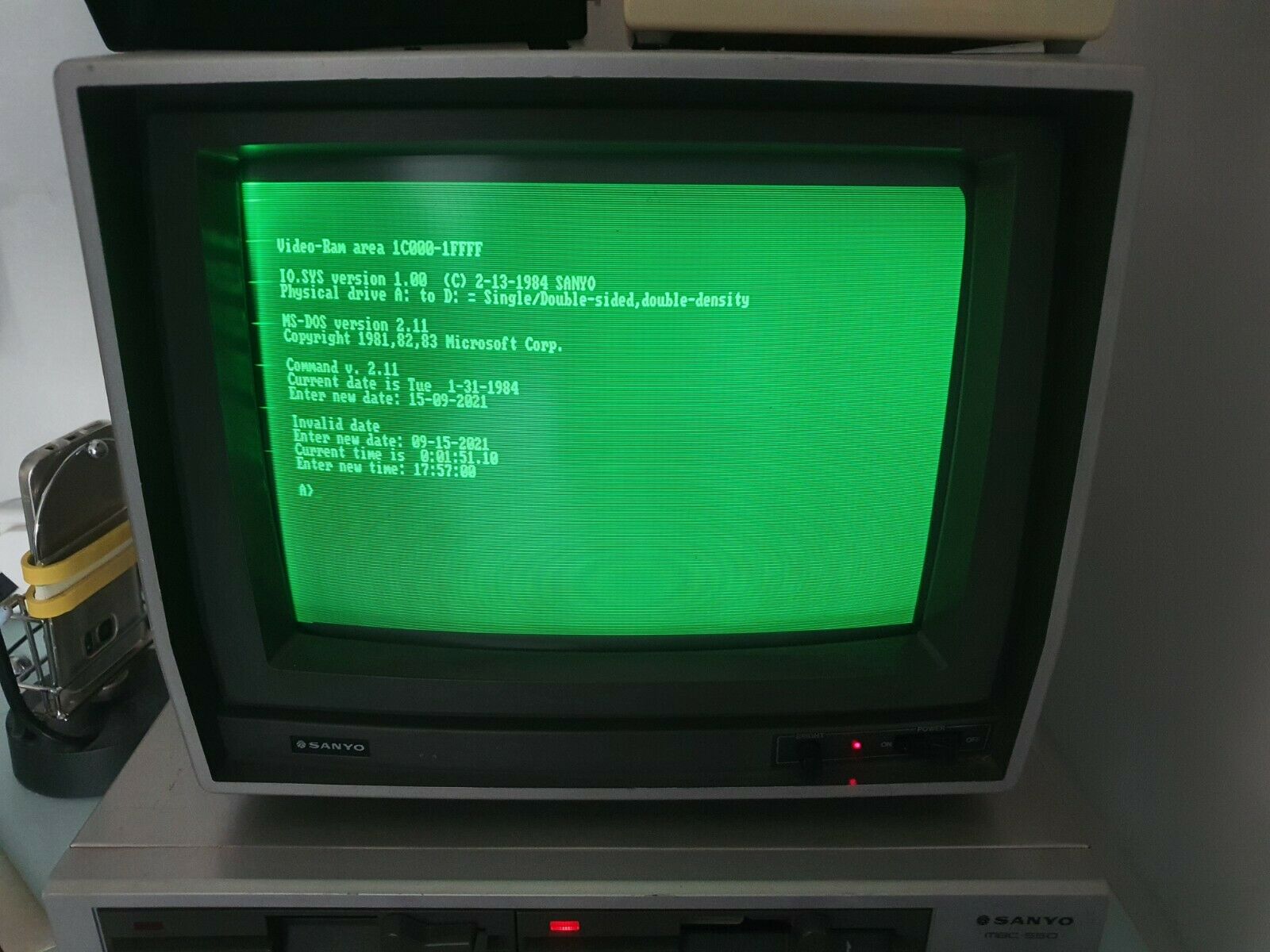 To make the computer run MS-DOS, Sanyo commissioned Microsoft to write a special version of MS-DOS (v2.11) and its command interpreter (COMMAND.COM) that would work on the MBC series. The special support for the Sanyo is contained within the file IO.SYS, where it reports video on interrupt 10h, disk on interrupt 13h, keyboard on interrupt 16h etc. All software making PC "ROM BIOS" calls are then redirected to this "RAM" BIOS (since IO.SYS is loaded into RAM).
