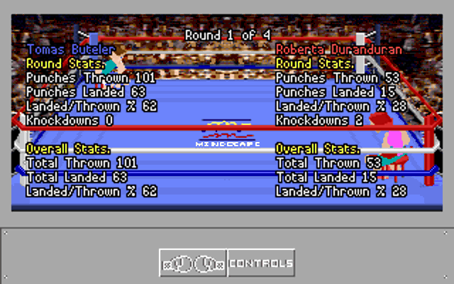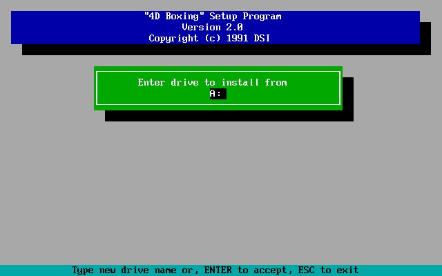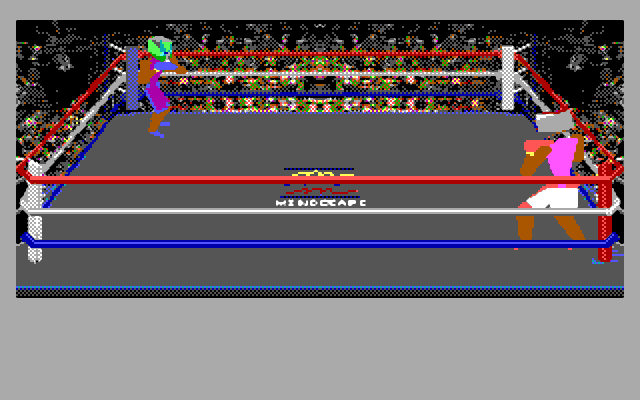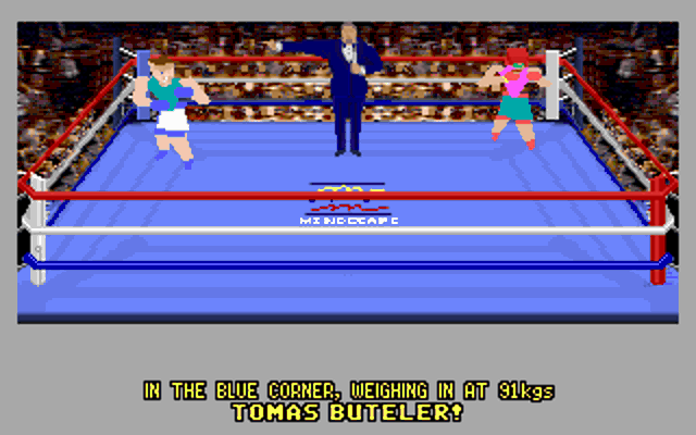 First release. Intro shows the Mindscape logo followed by "4D Sports(TM) Boxing". Main menu music and Hall of Fame are completely different (and better IMHO). NumLock should be on and use the keypad to navigate. The separate arrow keys don't appear to work well for navigation.