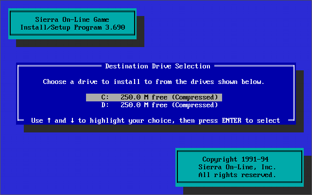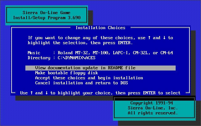 As mentioned further up, INSTALL detects if it's been run from drive A: or B: and if so it will automatically think you want to install the game to your hard disk and start that process. If it detects it's been run from a hard disk it will go into 'setup' mode as if the game has already been installed.