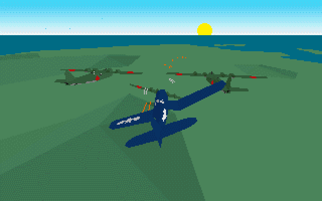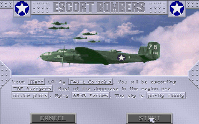 Fight for the US Navy, Army Air Force, Marines or Japanese Navy and Air Force in a variety of missions including ground attack, reconnaissance, bomber escort, dogfighting, or against famous aces. Just like in Red Baron, you have the option of single mission or campaign mode.