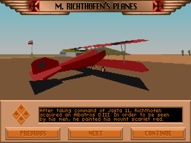 Red Baron included accurate 3D renditions of each plane and a handy mission recorder allows you to record the action, save it to disk, and even take over flying at any point in the recording.