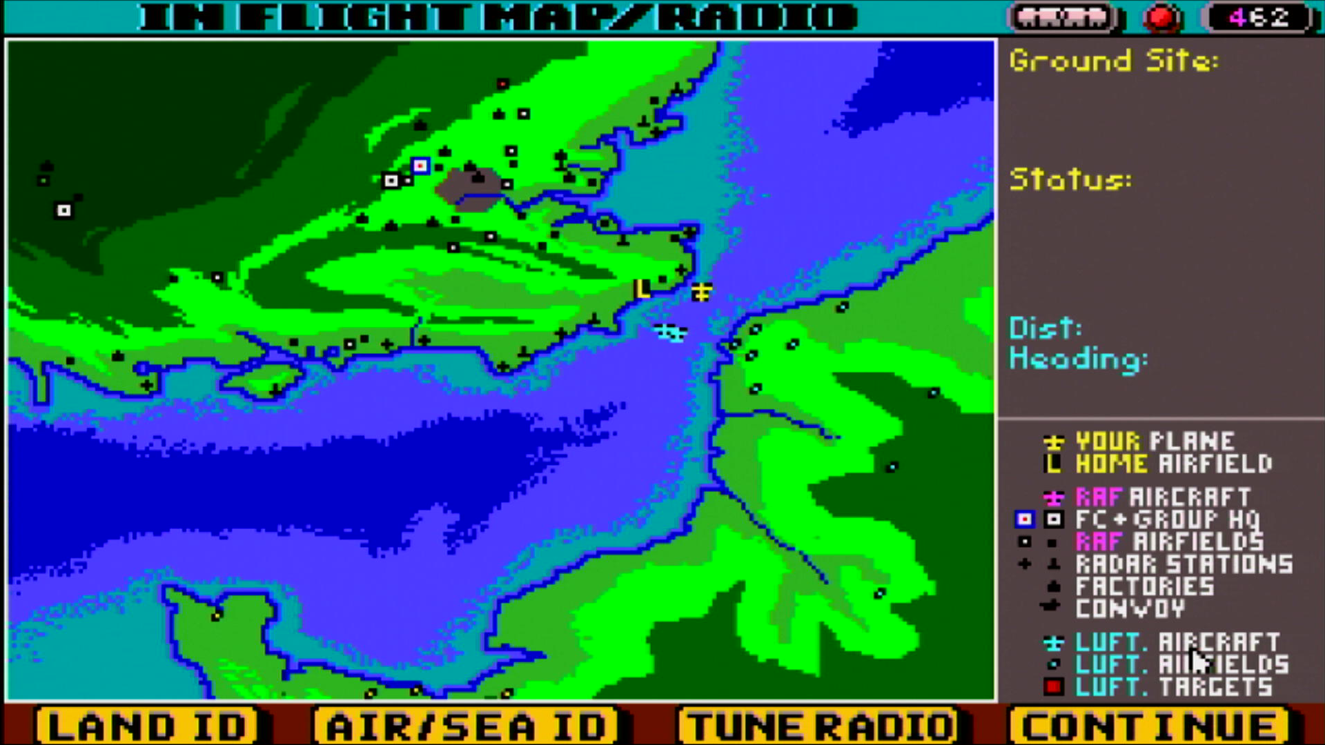 The game has a subtle form of copy protection. You can play the game, and even begin a mission. At the bottom of the screen, a message will appear stating 'Tune Your Radio. Press 'M'. Before long, the flight will not be able to continue until you have tuned your radio. Pressing 'M' or choosing 'Tune Radio' from the In-Flight Map/Radio screen will display the map and on the right-hand side your are prompted to tune your radio frequency cypher wheel. You will see a shield and a name beneath it.