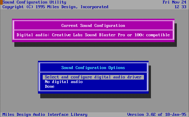 The digital audio configuration is stored in a text-readable file in the game directory called DD.INI.