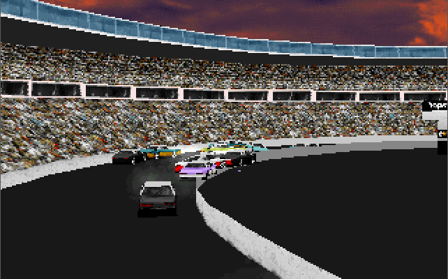 The 3D models of the cars are nicely detailed, as is all the surrounding scenery. The standard game runs in a resolution of 320 x 200, though a special version was bundled with the Diamond Stealth 3D 2000 graphics card in April 1996 and ran with hardware acceleration, an upscaled resolution of 512 x 384 and with more object texturing. This version will also probably work with other S3 ViRGE-based graphics cards. At 320 x 200, it does appear very blocky by today's standards but in 1994 it was perfectly normal. If there's one complaint I have, it's that when cars are damaged you get a splintering effect during the crash but any parts that should fall off don't. Perhaps I'm being too picky but it would have been nice to have bits of the cars remain on the ground and act as further obstructions.