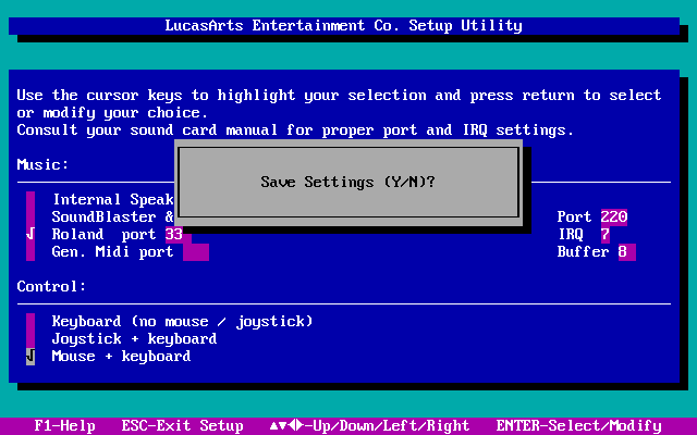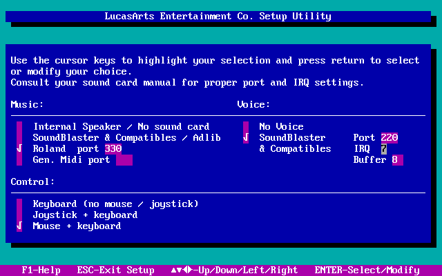 *Original floppy disk version did not support Roland audio. You could purchase an additional MT-32 Upgrade Disk from LucasArts.