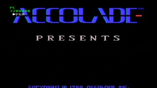 Keep pressing the ESC key until you are back on the "Accolade" screen. Hitting ESC once more will bring up an "Exit to DOS? (Y/N)" prompt. Press "Y" to return to the DOS prompt.