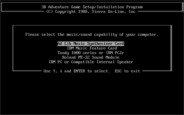The game doesn't require any extended memory (XMS) or expanded memory (EMS) drivers to be loaded. To install the game or configure the graphics and audio settings, run INSTALL.EXE: