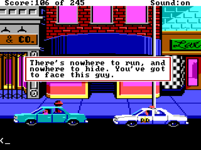 Police Quest: In Pursuit of the Death Angel does give you some guidance as you work through various scenarios, while at other times it is inevitable you will forget a critical item before going to the next scene. It rarely feels rushed, and unlike some other Sierra titles, I don't believe you can 'miss' a key interaction by not getting somewhere fast enough (or not waiting around long enough for some key character to show up), which can be a source of frustration.