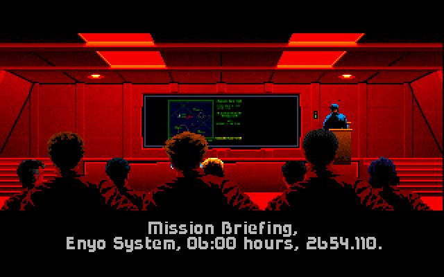 The first game in what would become a long-running franchise, Wing Commander is a space combat simulator from ORIGIN Systems, released in 1990. Somewhat unique at the time was the immersive storyline intermixed with the action gameplay. The player takes on the role of a nameless pilot (later referred to as Christopher Blair in sequels) aboard the TCS Tiger's Claw, a Bengal-class Strike Carrier. The Terran Federation are at war with the feline-like Kilrathi Empire, who are bent on the destruction of the human race.
