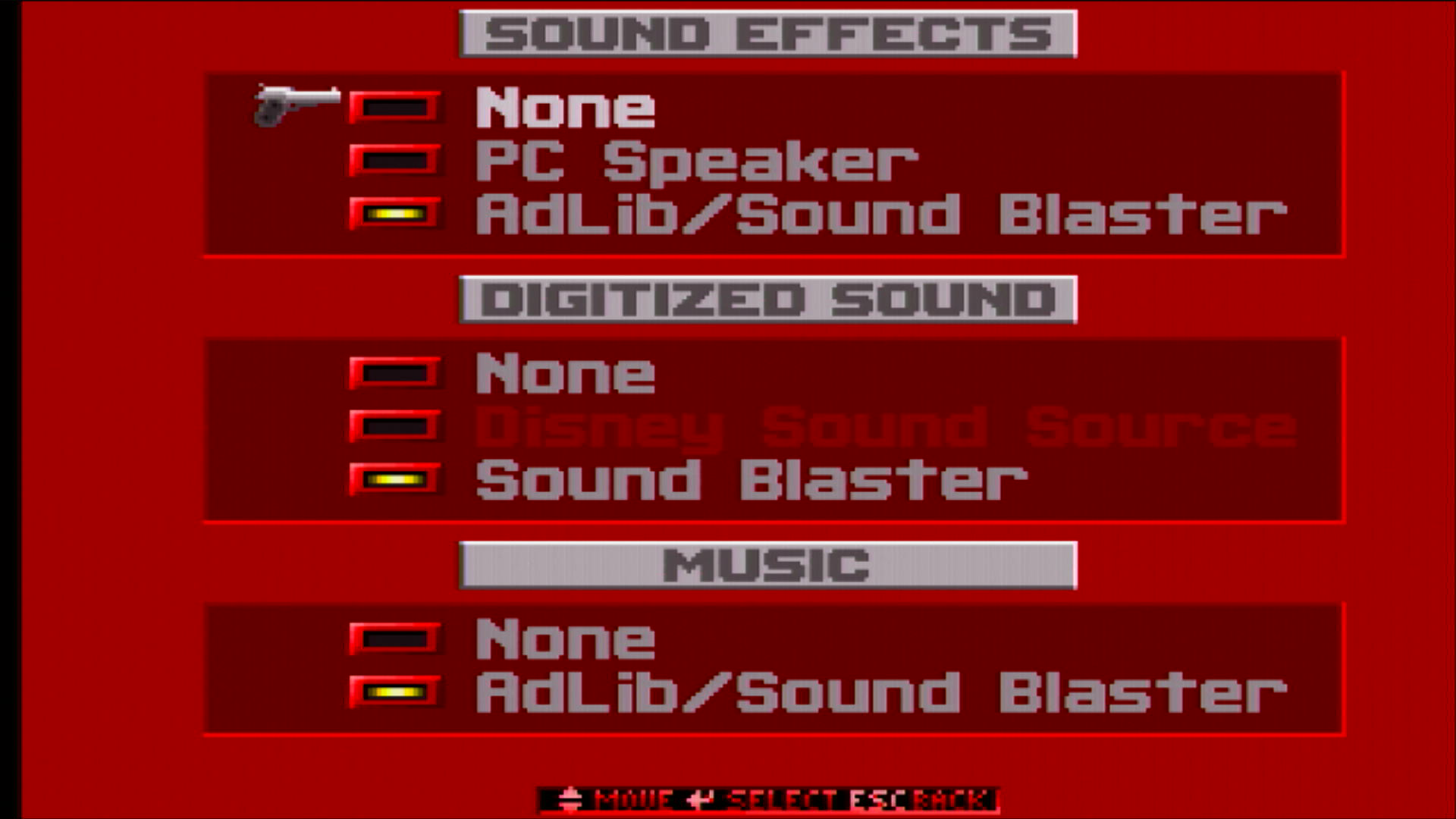 Audio support for Disney Sound Source, Ad Lib, Sound Blaster, and Sound Blaster Pro. MT-32/GM available with an aftermarket mod.