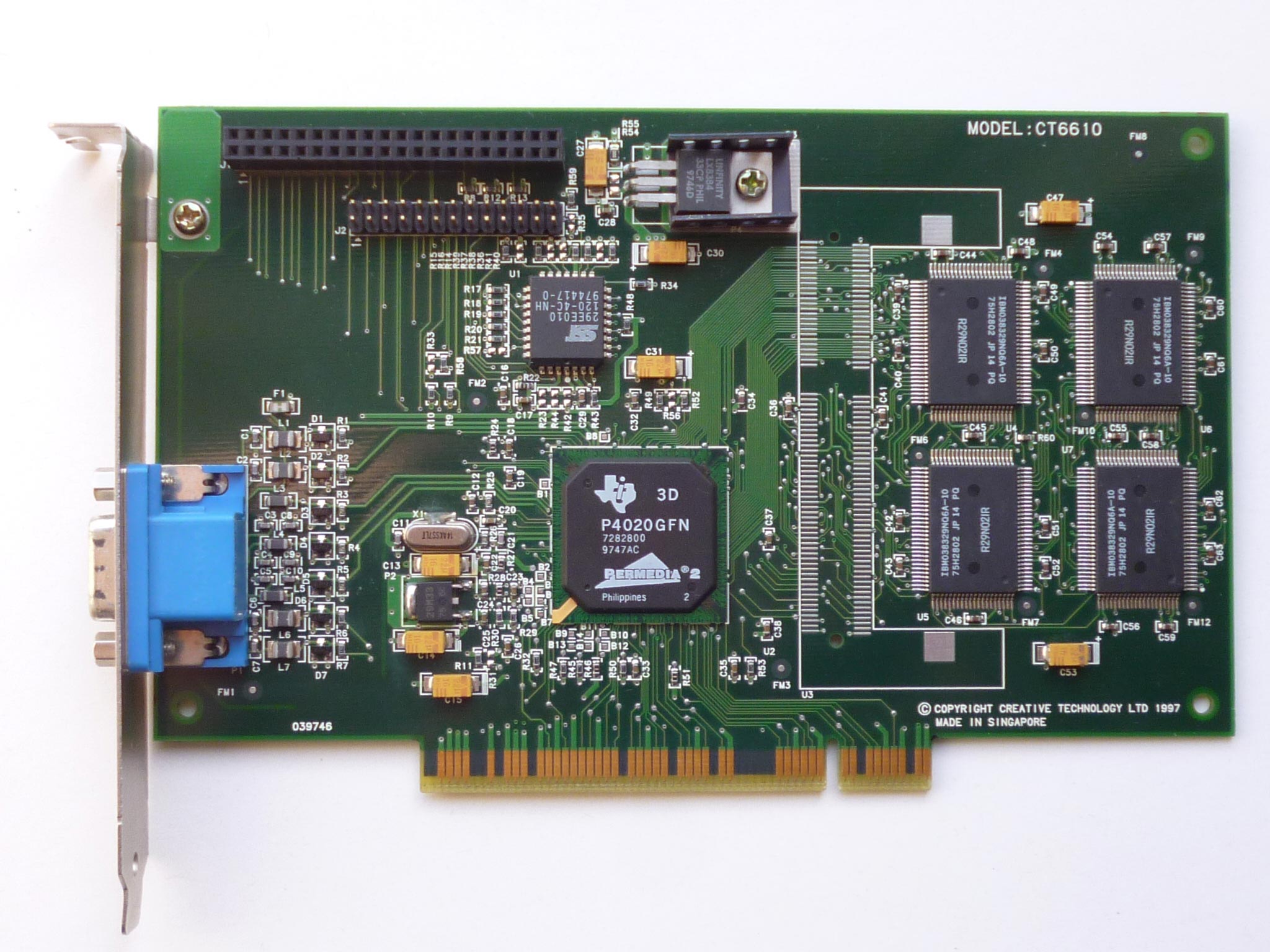 The Permedia 2 was marketed as a card for professional use rather than 3D gaming, but it was quite unique in that it could also hold its own [to a point] with games too. It was a much faster chip than its forebear, Permedia. It provided support for both OpenGL and Direct3D, MPEG2 hardware acceleration and onboard DMA engine. One odd omission is its lack of VESA support.