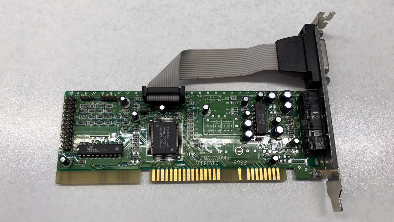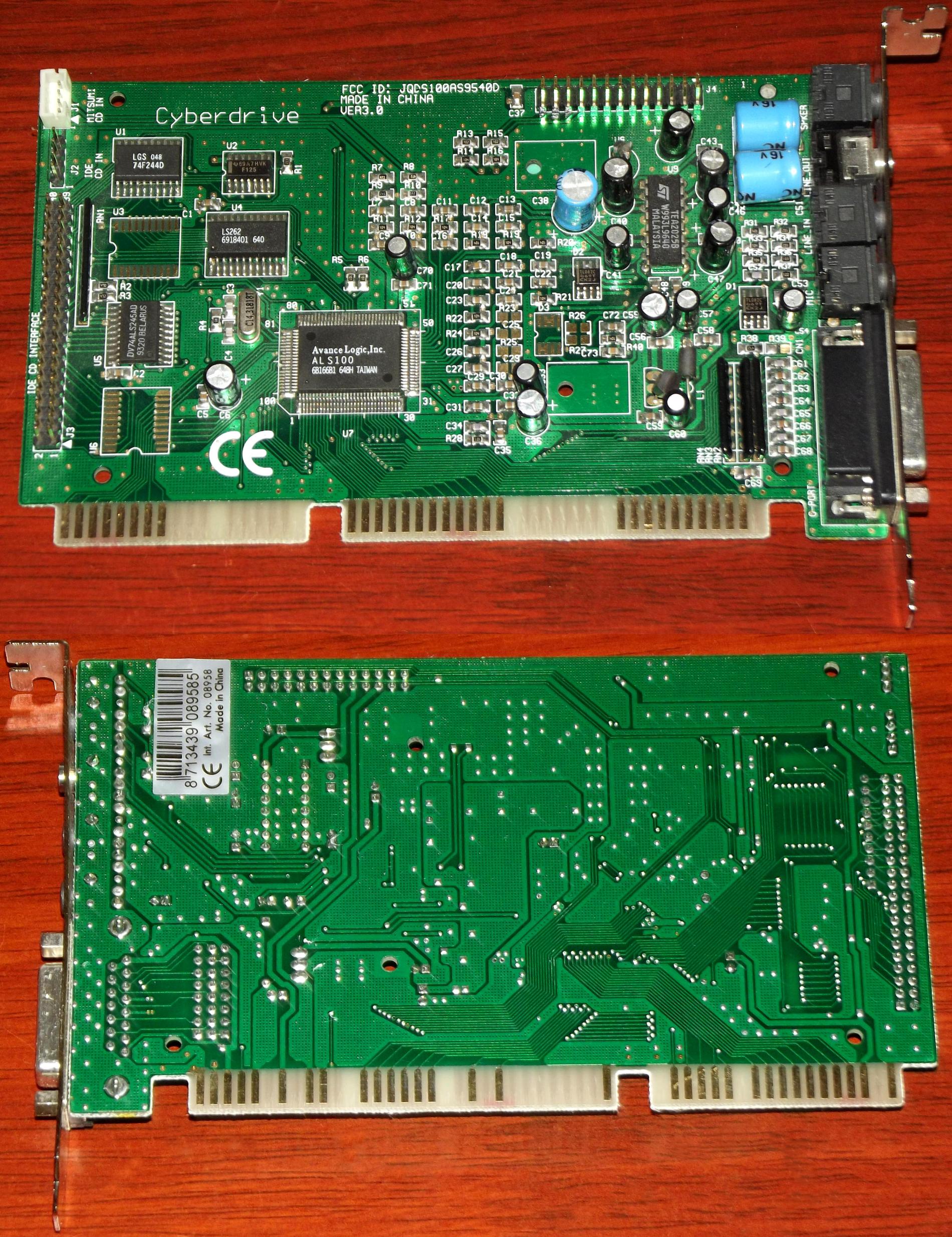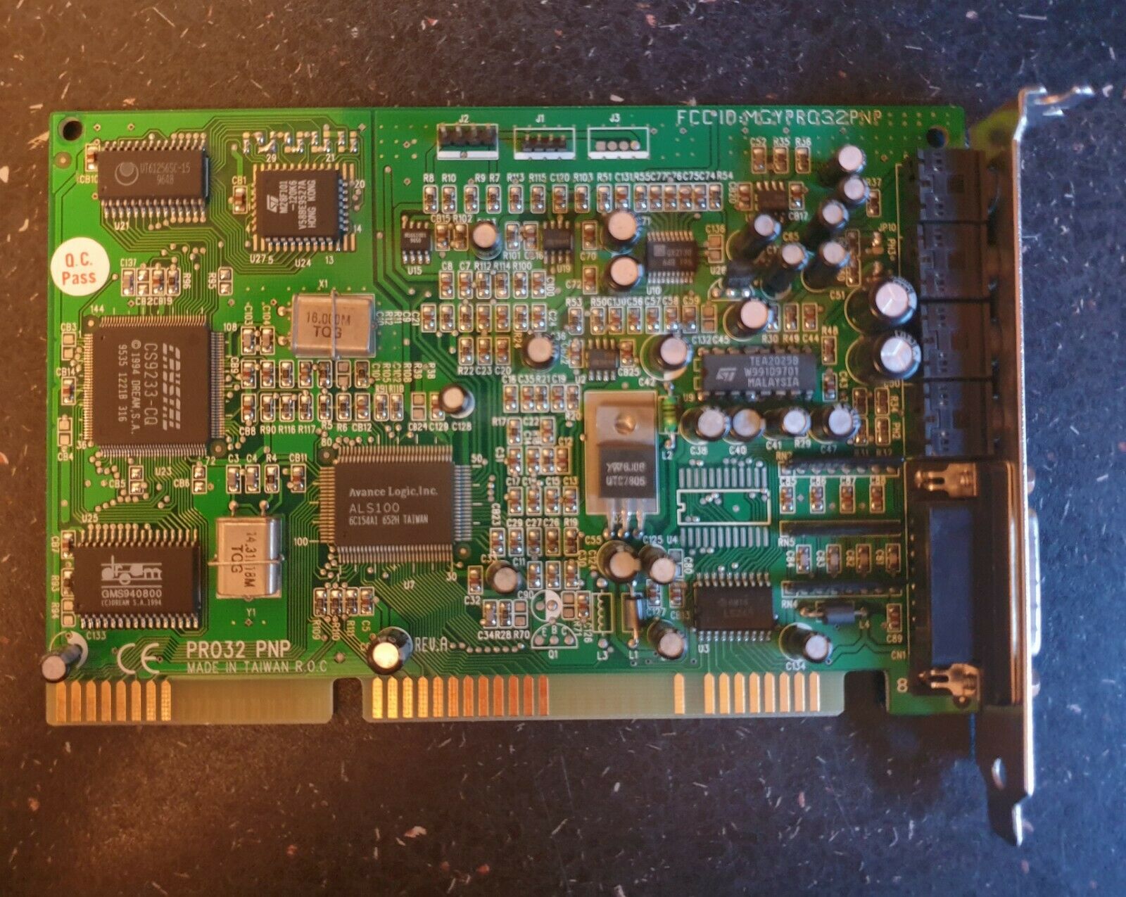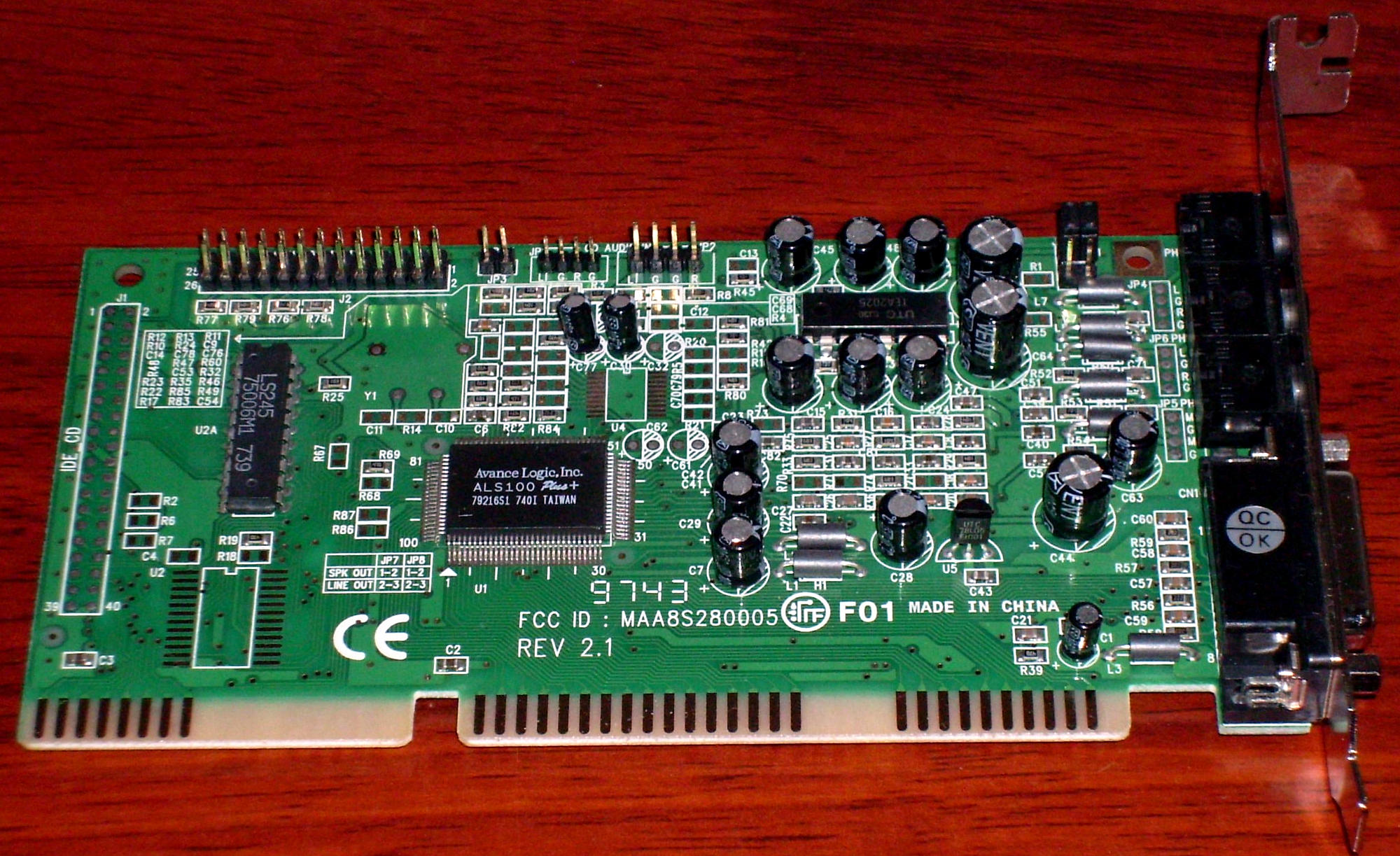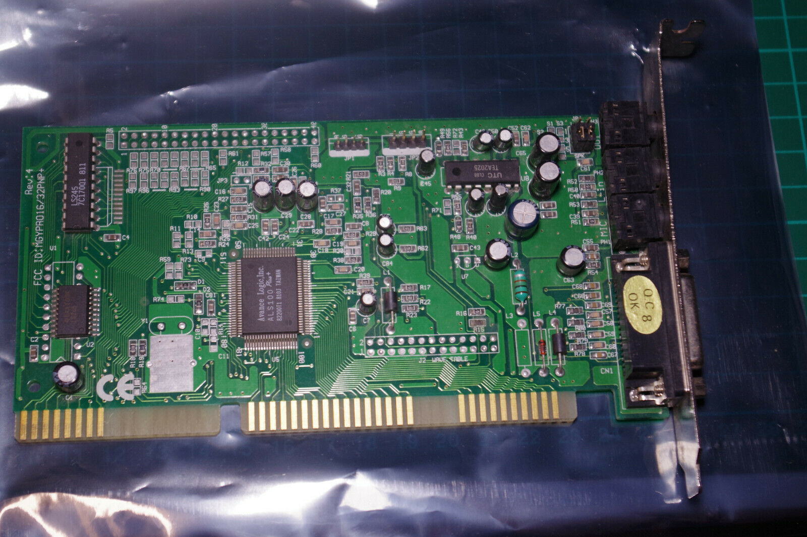 The ALS300 marks a move away from DOS compatibility, being a PCI card. Its ASIC chip, ALS300, emulates Sound Blaster Pro and Sound Blaster 16 and has a built-in FM synthesizer for OPL3 emulation.