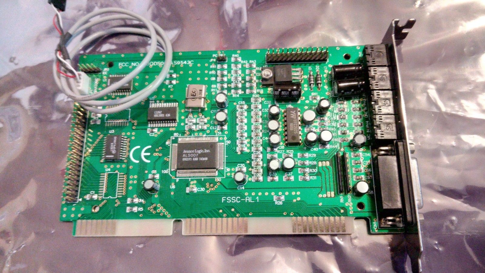 The ALS007 is a Sound Blaster, Pro and Sound Blaster 16-compatible card. For OPL3 music it has an LS262 chip. The game/MIDI port can be used as an MPU-401 interface (UART only), and the card also gets an IDE interface for a CD-ROM which is initialised using a file called CDSETUP.SYS.